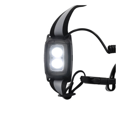 Avec son angle inclinable à l'avant, la ceinture Dual Light est idéale pour une visibilité accrue lors de la course à pied et les promenades en condition de faible luminosité.